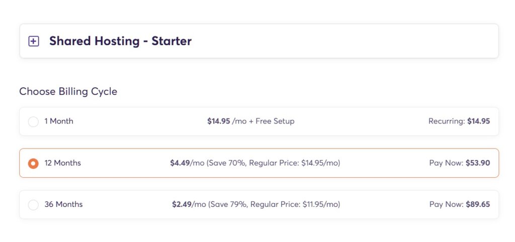 - Click the ‘Order Now’ button on the plan you want to purchase.