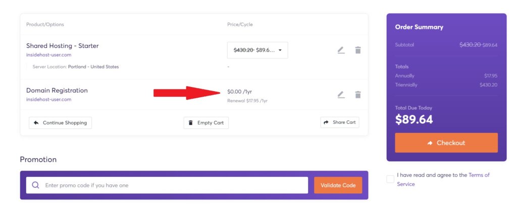 - You’ll then see the total cost and your savings. The price is reduced from $430.20 to $89.64 for 3 years. You have saved $341 on a three-year hosting package. This is how you can be confident that the InsideHost’s ChemiCloud coupon has been successfully applied.