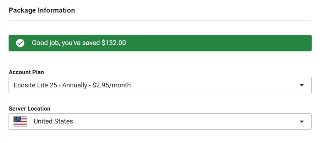 - Check the package information. Select the account plan for a Triennial Term (36 months). Choose data centers or server locations from the United States, Canada & Europe.