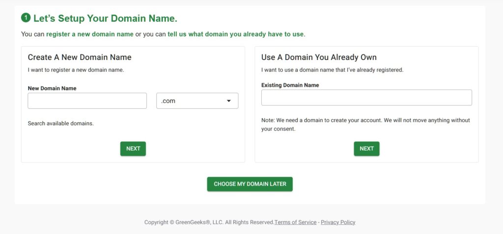 - Next, it’s time to name your website. By activating our exclusive Greengeeks coupon code, you get a free domain registration with any hosting plan that you choose. Type your keyword and check availability.
