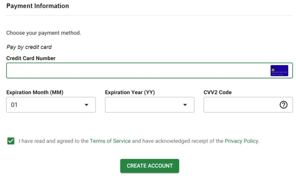 - The last step is to enter your credit card details and click on the “Create Account” button to create your hosting account and follow the instructions on your screen.