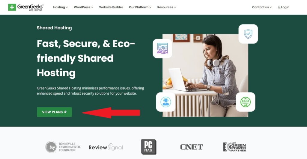 - You’ll be taken to the shared hosting plans and pricing page. Click on View Plans button to see the shared hosting plan. There are 3 GreenGeeks web hosting plans to choose from – Lite, Pro, or Premium.