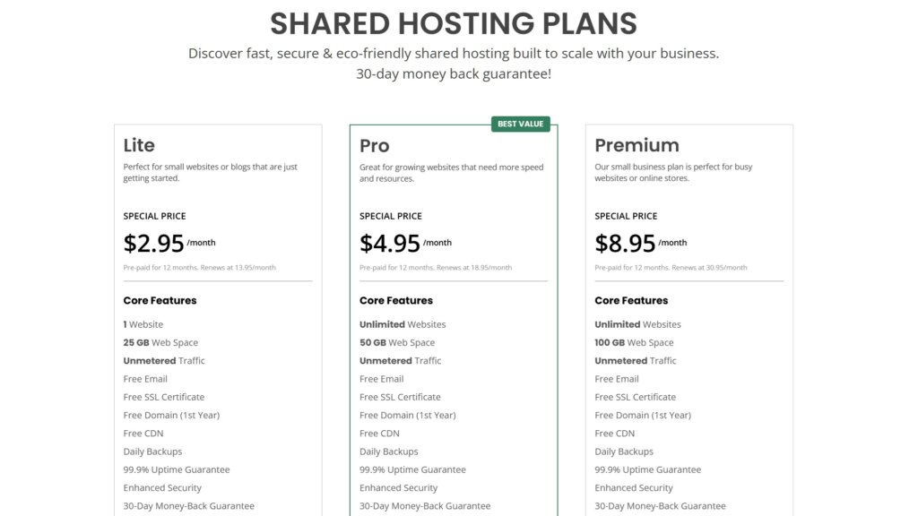 Renewal prices are higher than those initial prices. According to the official site, the Lite plan renews at $12.95, the Pro plan renews at $17.95, and the Premium plan renewal cost is $29.95 on monthly basis.